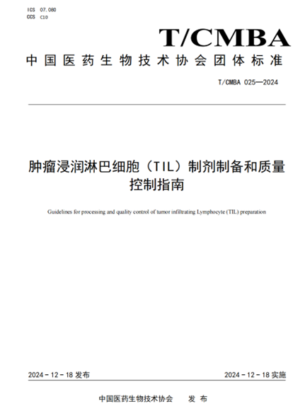 近日,备受关注的《肿瘤浸润淋巴细胞(TIL)制剂制备和质量控制指南》(T/CMBA 025-2024)于2024年11月20日公示,并于12月18日正式发布与实施。